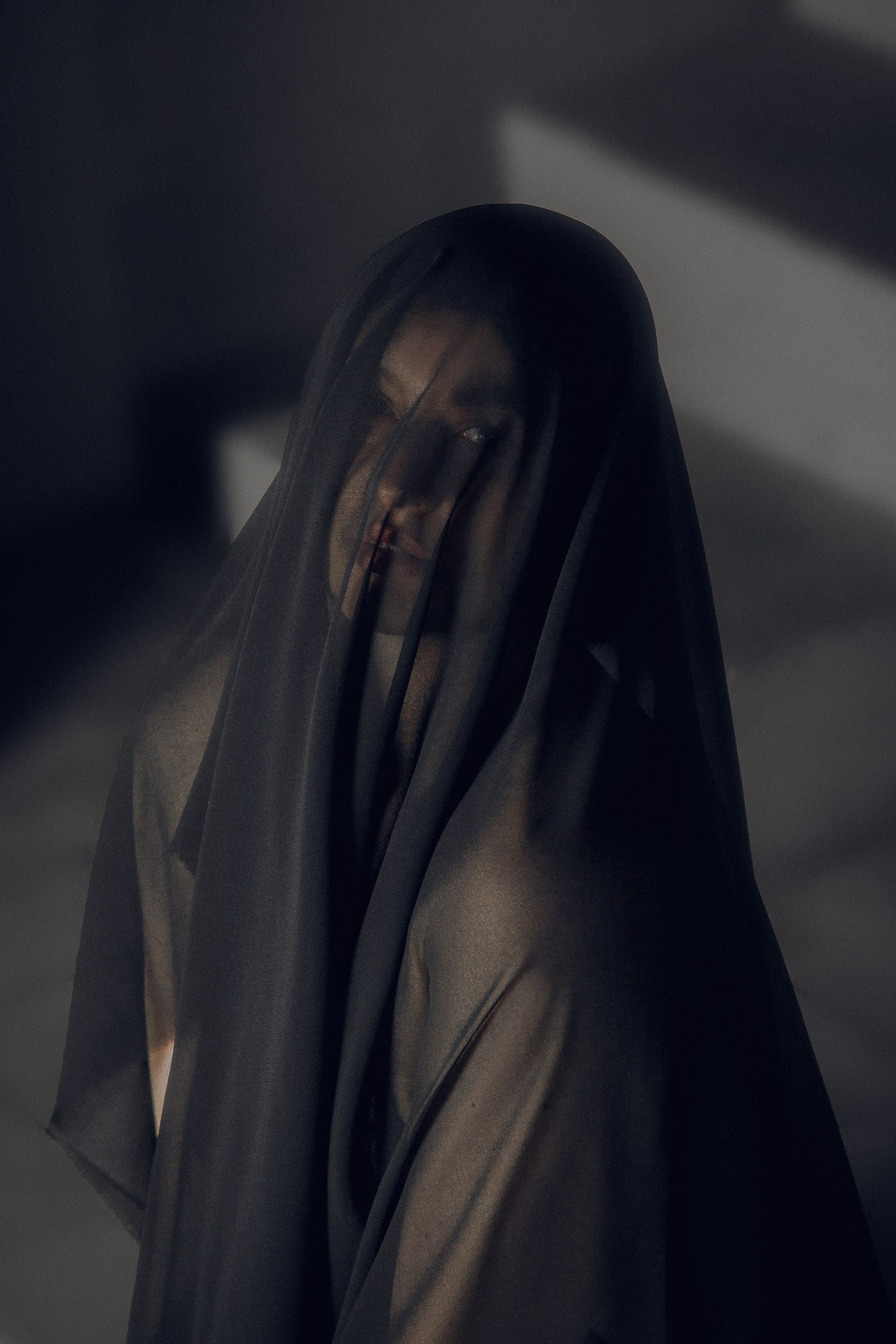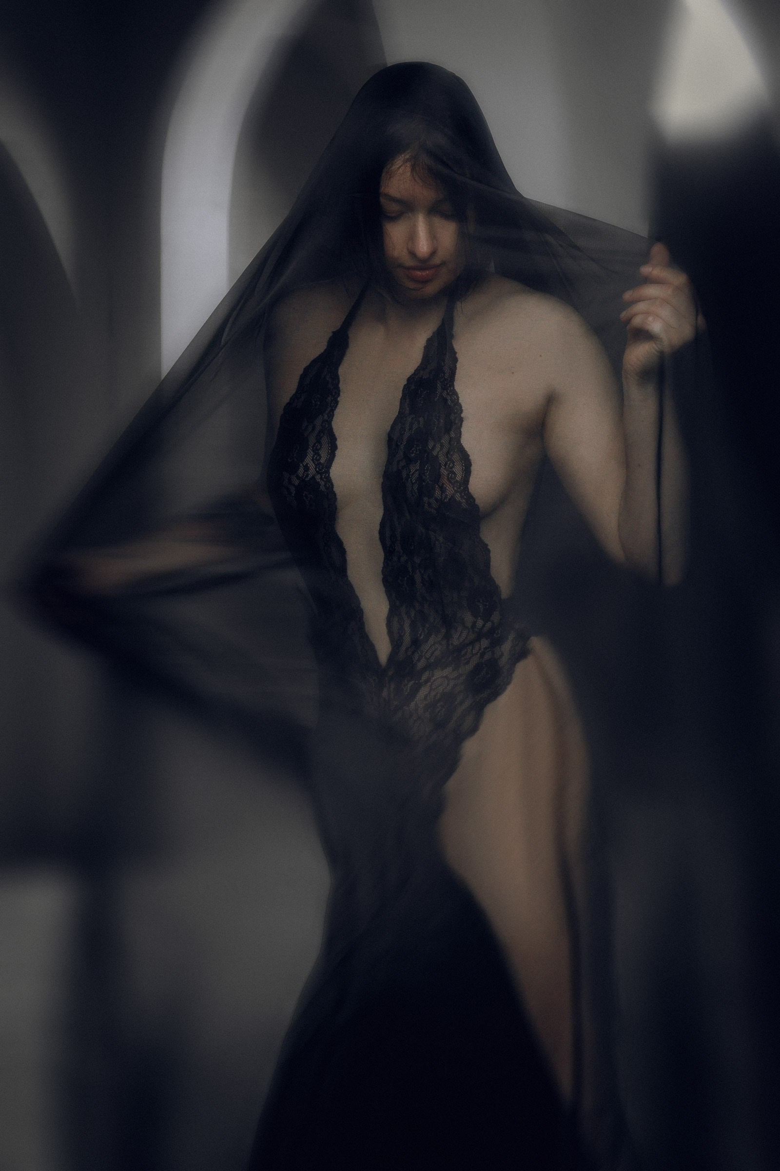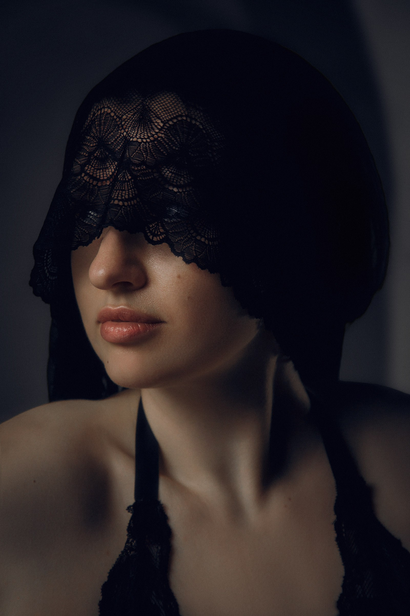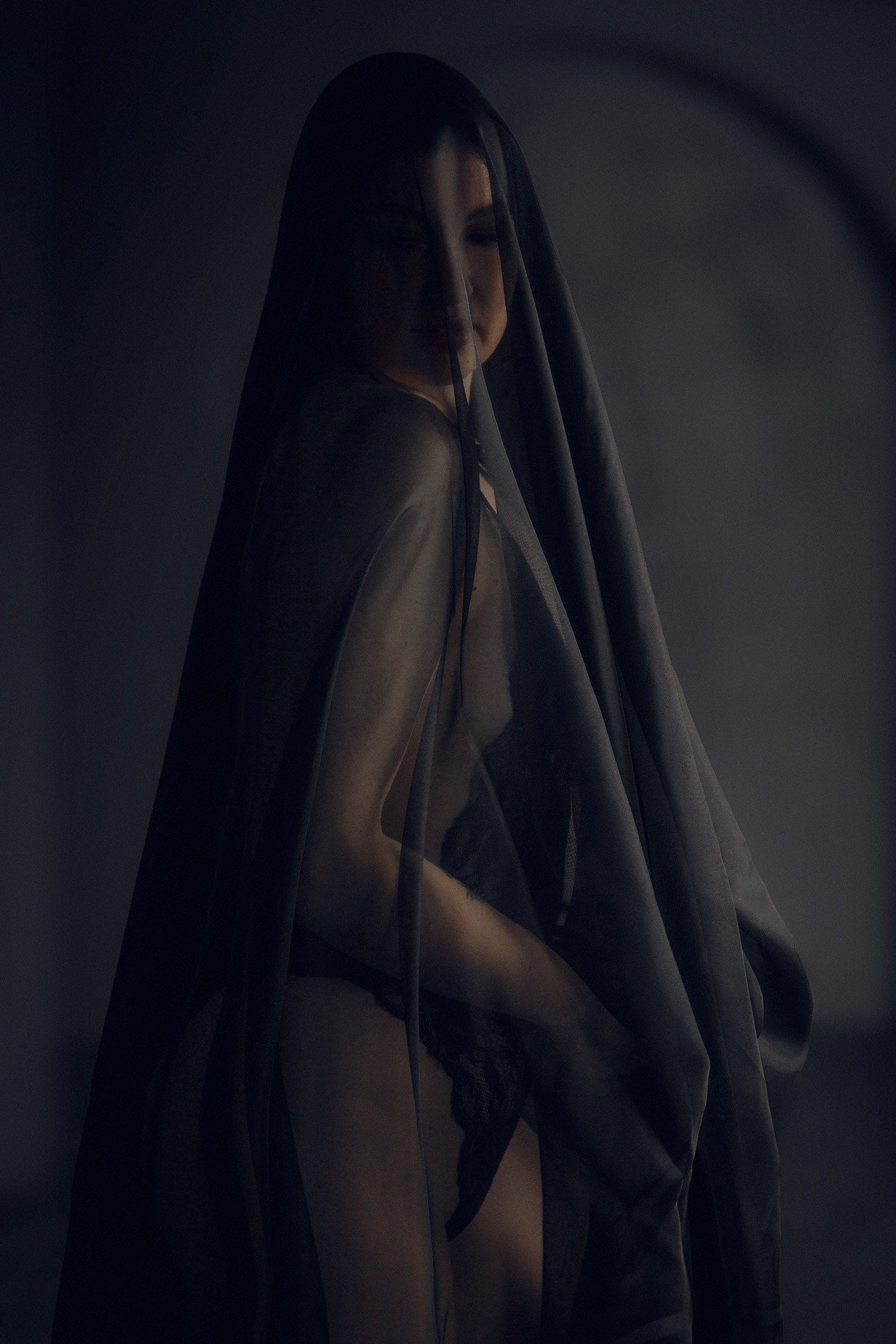 Фотосессия с черной вуалью и короной в студии для Дарьи