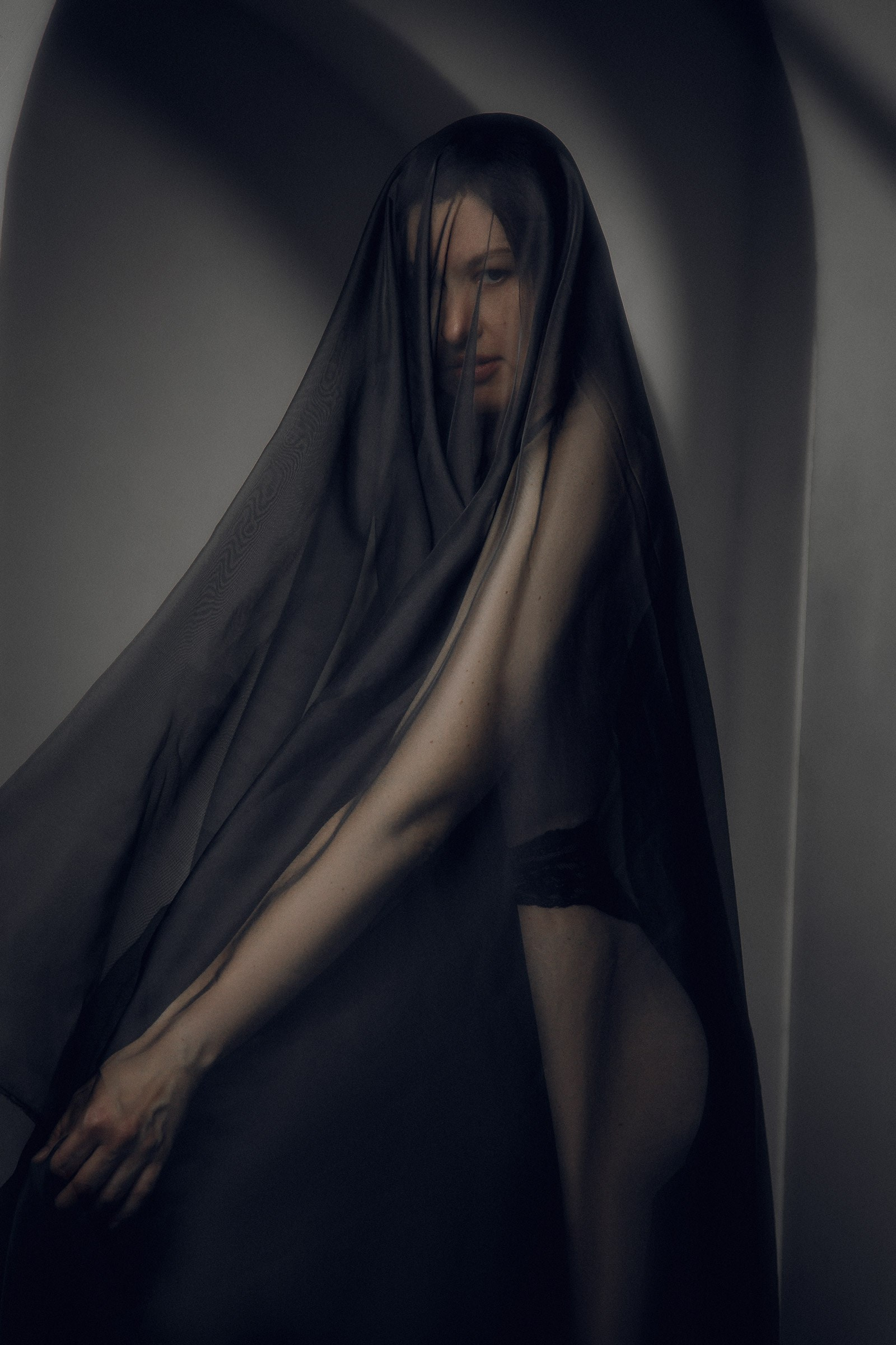 Фотосессия в студии с белой тканью для Ольги