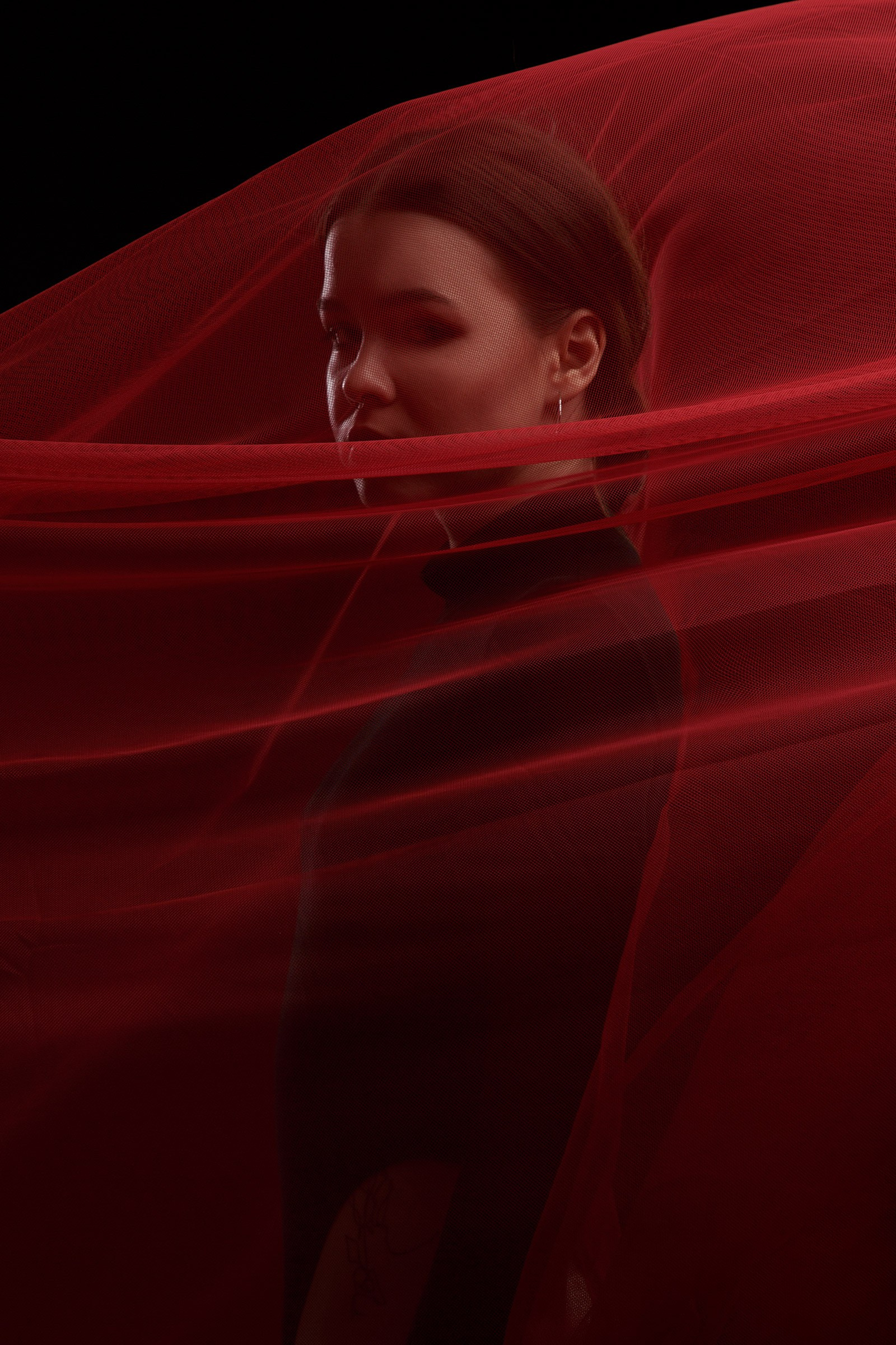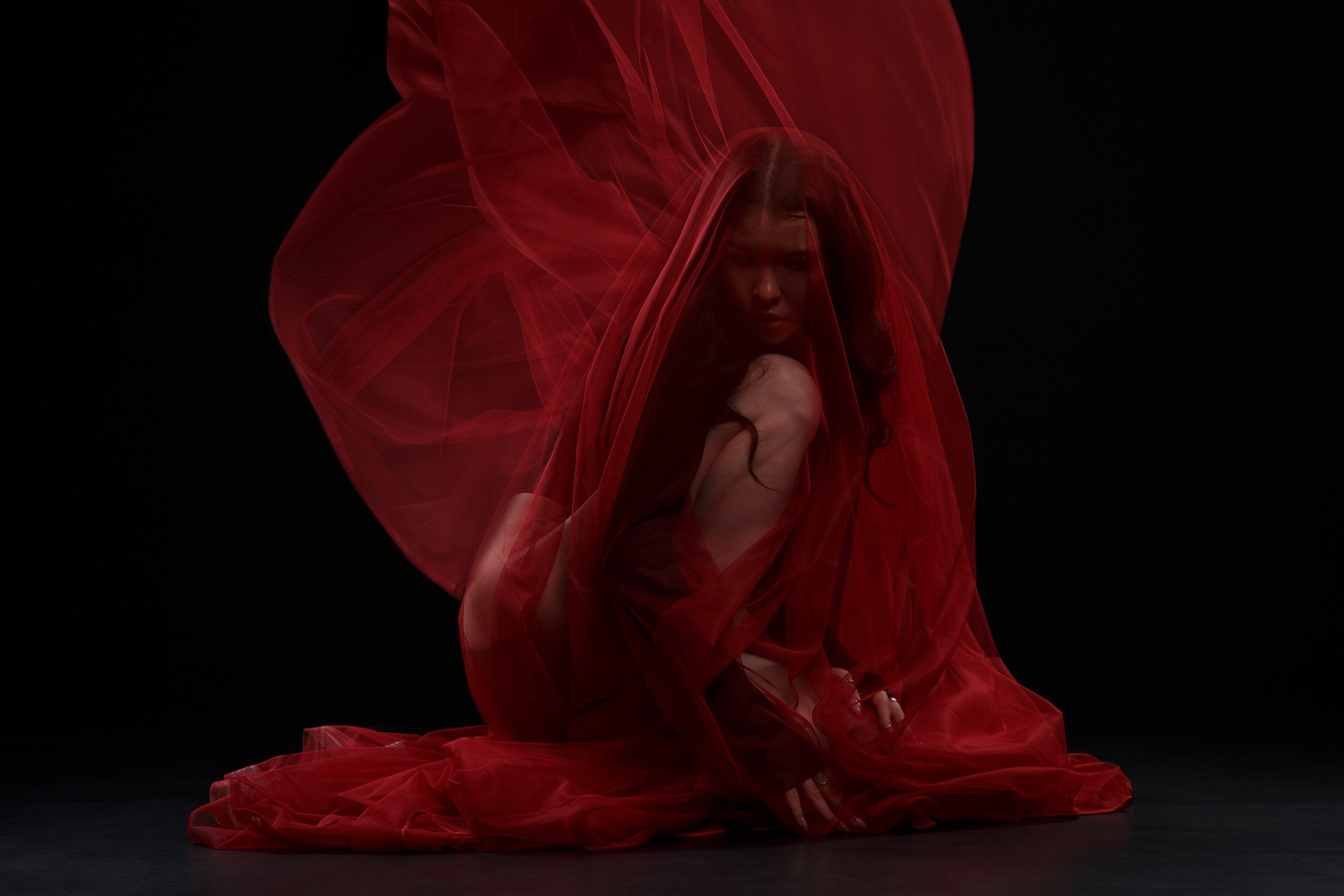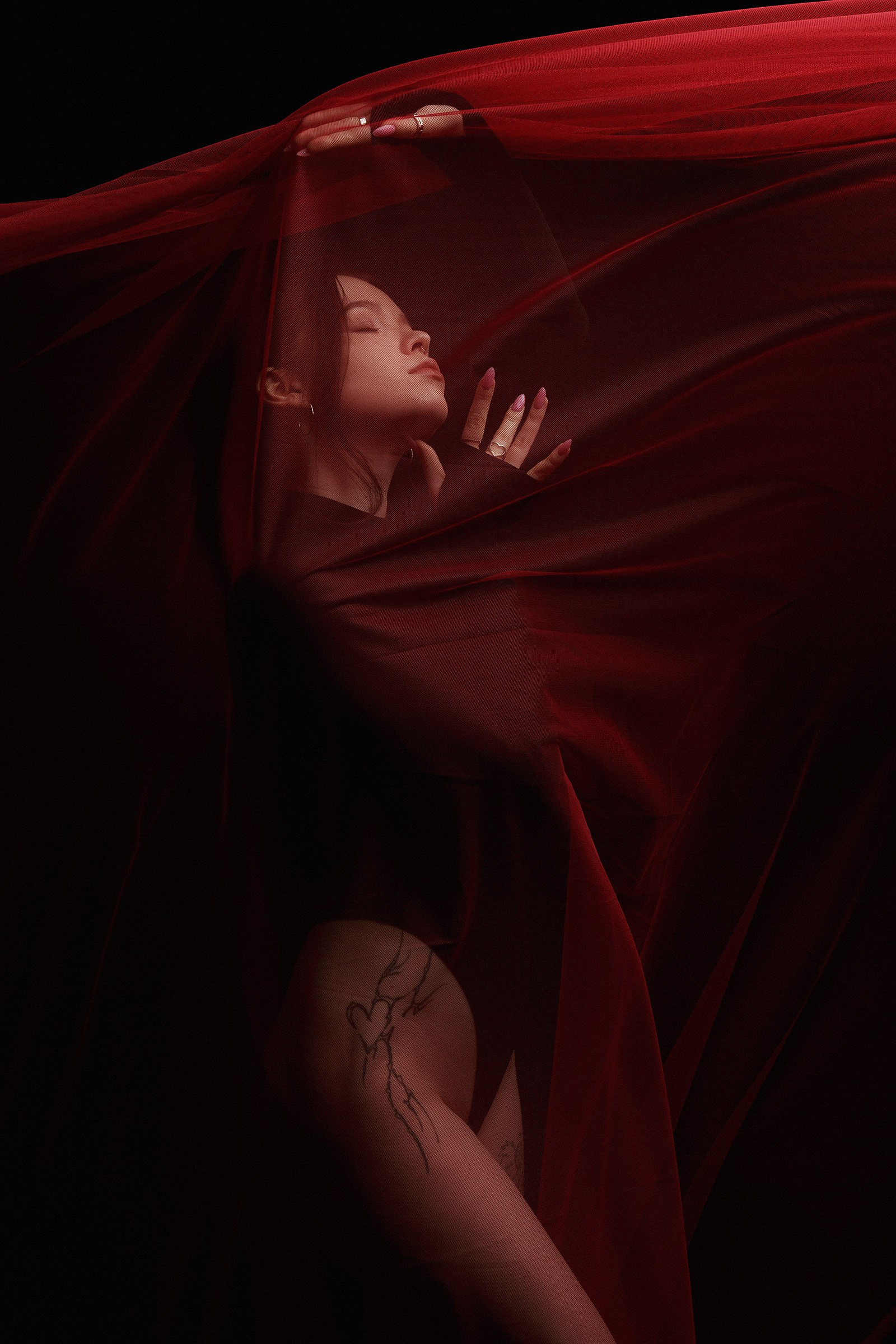 Фотосессия с красной тканью для Алены