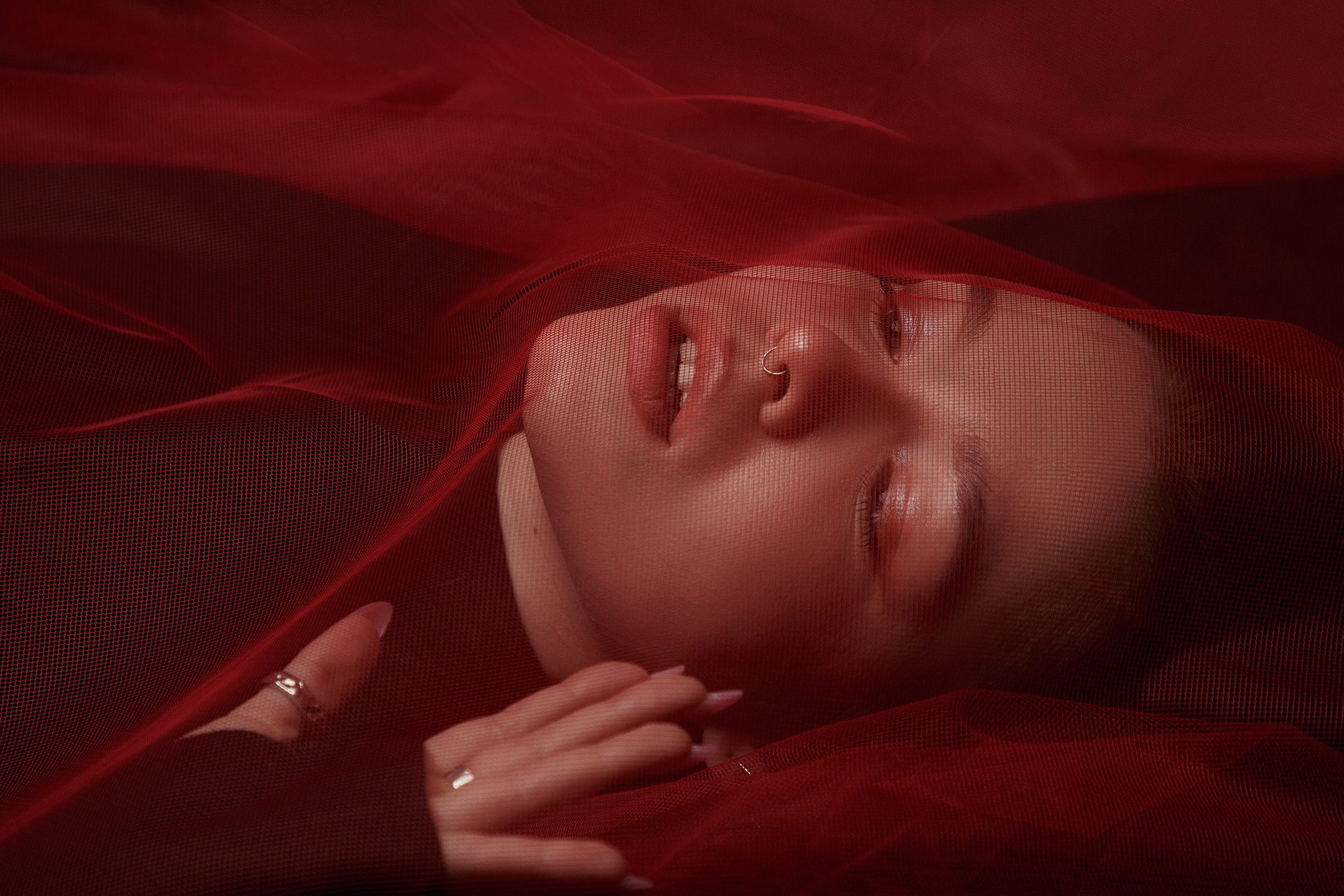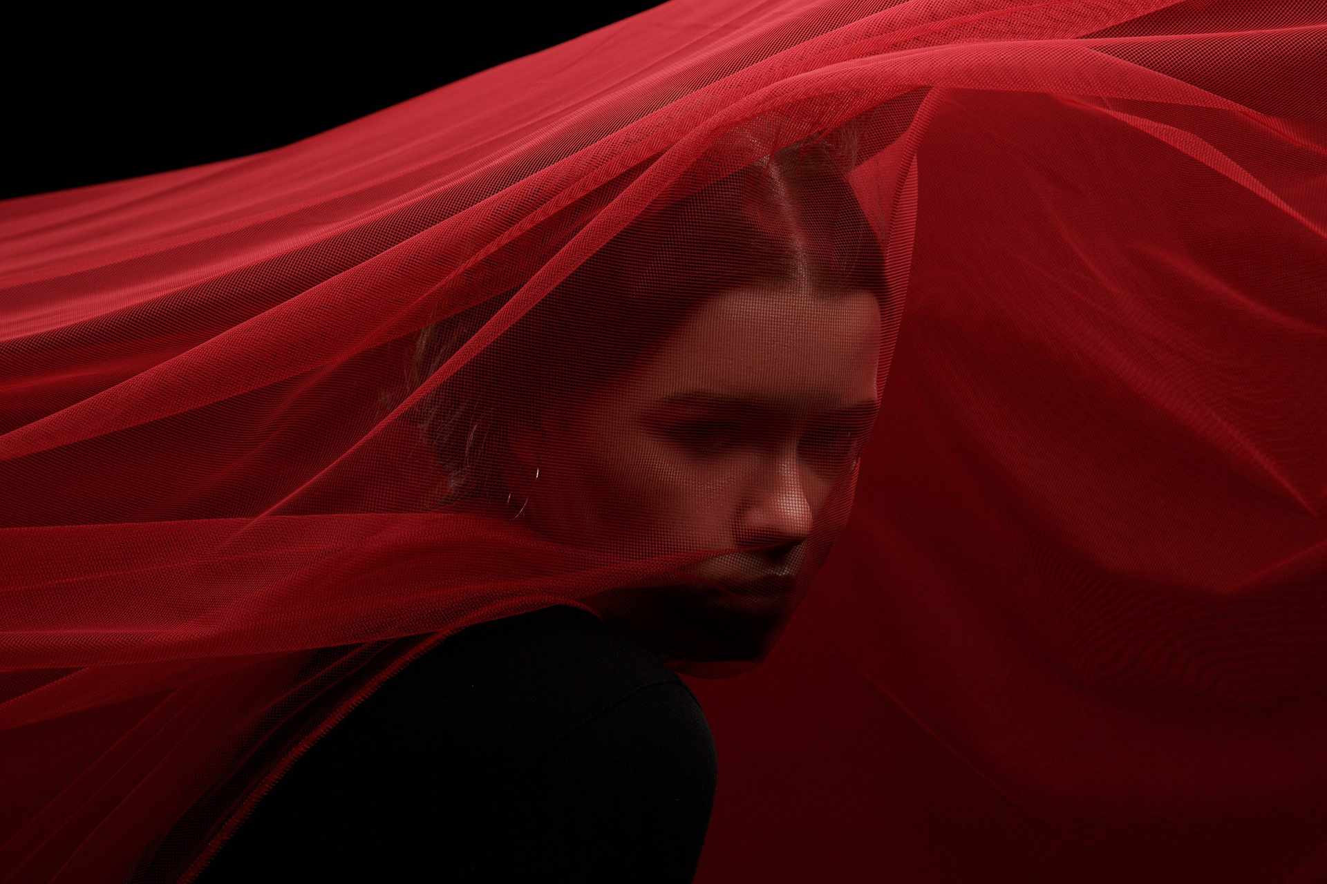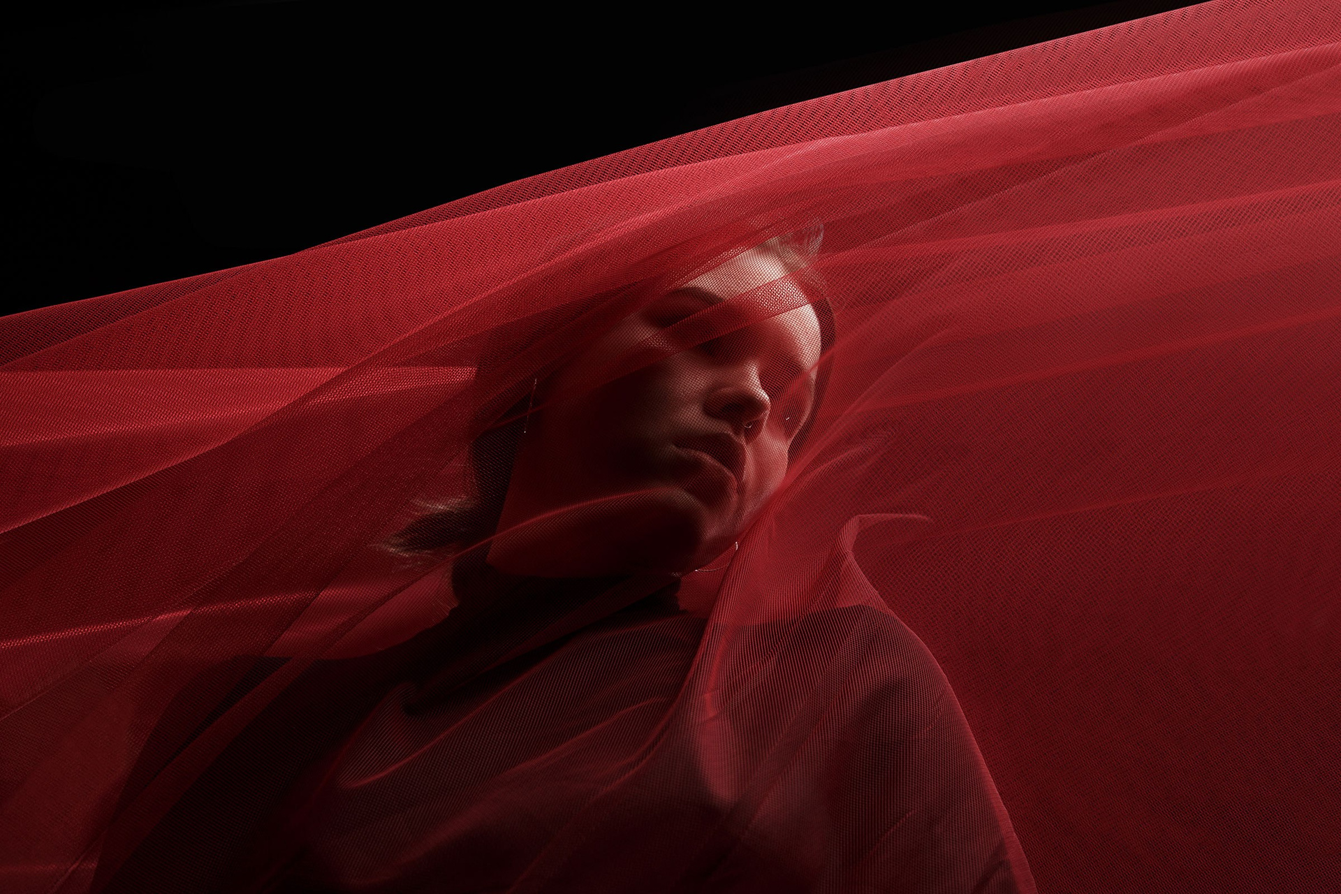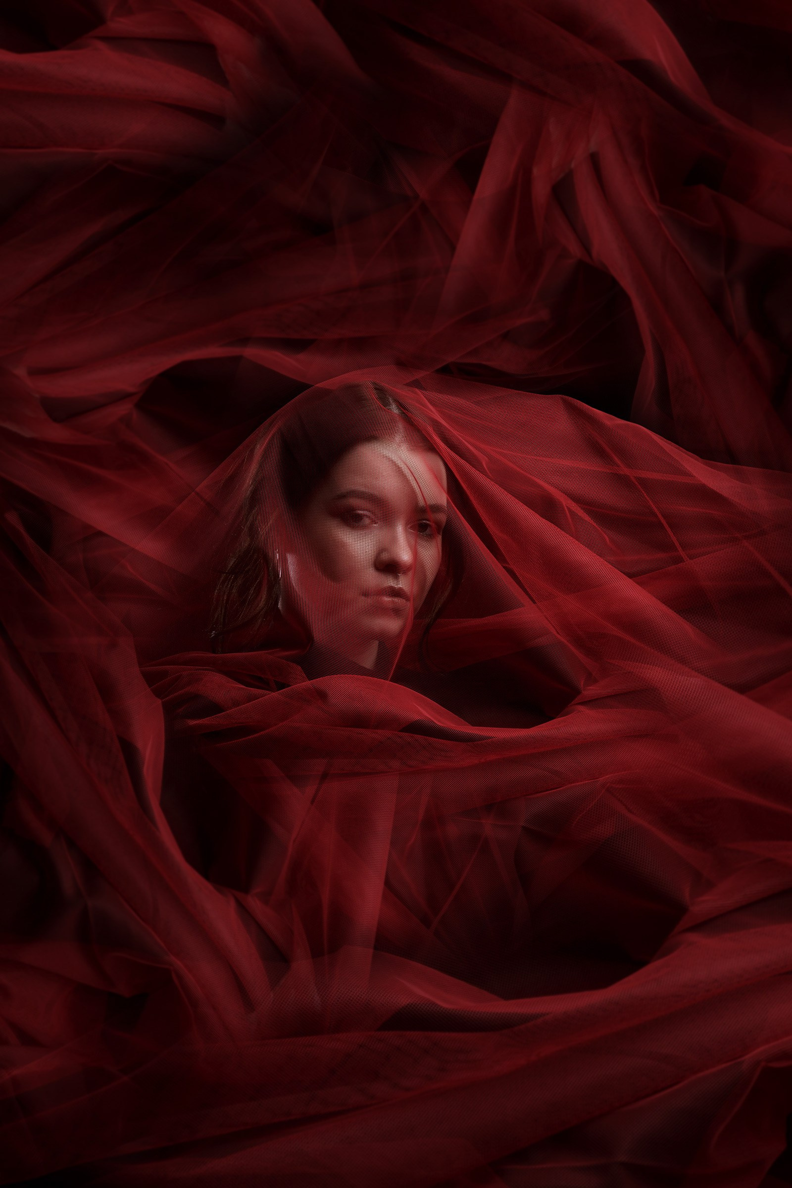 Фотосессия с красной тканью для Алены